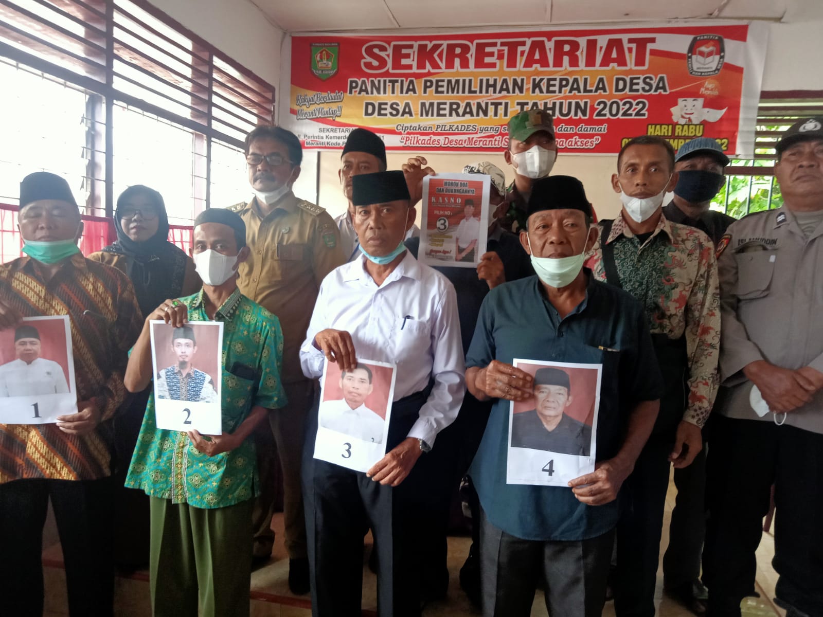 | Foto bersama Cakades Meranti, Nomor Urut 1, H. Sunardi, S.Pd, Nomor 2, warjito, S.Pd, Nomor 3, Kasno dan Nomor 4, Legimin. |